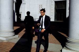 Super strong. The silhouette looks almost like it could be his shadow or anti-self. The pillars on either side act as solid frames, while their shadows really lead the eye in.