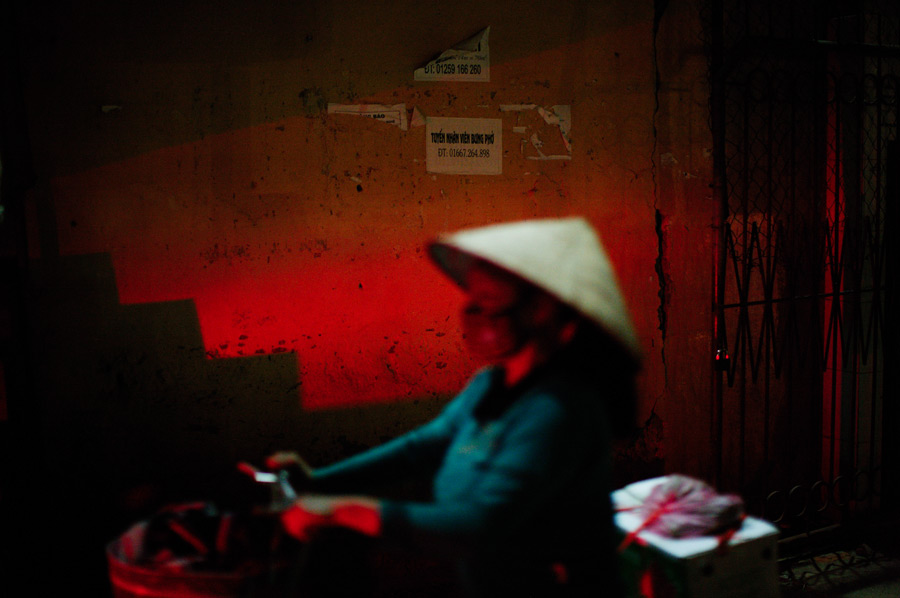 How do you go about shooting a street photograph? Sometimes I like to sit at a café and watch for around 1-3 hours. I see. I look. If I find an interesting background, I wait for some people to walk into my frame. But some times, I like to talk to people. For instance, last time I went out to shoot, I walked on the street and immediately spoke with people; to connect with them and to learn about their lives. While we were talking I noticed they had relaxed. That’s when I took a relaxed portrait of them. Not passport photos. Of course it’s very important for me to form interesting geometric frame. So while I’m talking to them, I am constantly looking for an interesting viewpoint. I am more interested in the art of the shot and not the classic street frames. So my shots tend not to be classic street captures. Sometimes it’s just the color. I like to take impressionistic images. For instance, Vietnam before bedtime. That’s the direction I am more interested in.