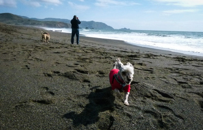Arta stepped out of the car and took one whiff of the ocean air, and like a powerful potion, as if Popeye ate spinach, Arta bounced back and started chasing dogs 2 and 3 times her size.