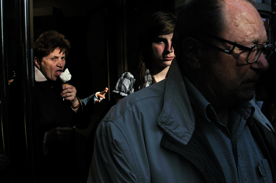 Many times I repeat the route. It is always different in-spite of being the same…the people always change as well as situations, lighting, sounds … It is and it will always be a challenge to try to make something different when exploring the same places. It’s fundamental to be innovative in the same spots. The “glance” the “way to see” must be creative every day. It’s a challenge, not only for me, but for everybody who also shoot at “my” favorite places… I am always hoping that someone can see something I never saw in my usual spots. Creativity is so important, isn’t it?