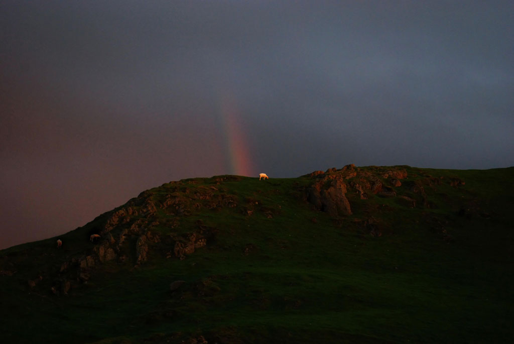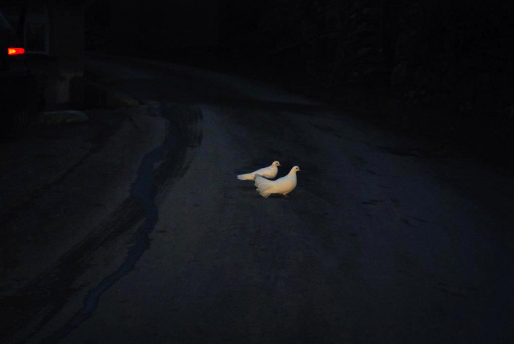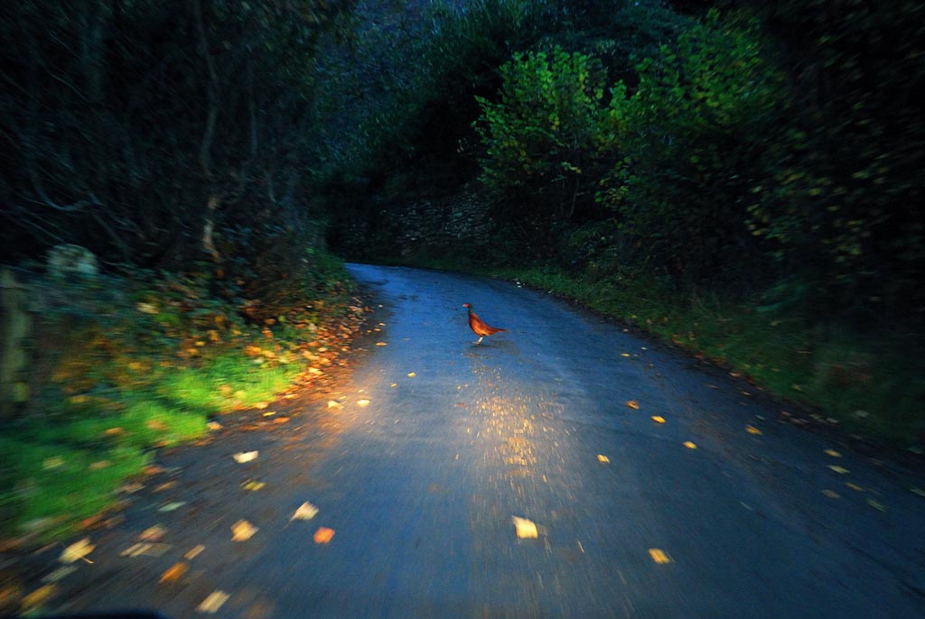 However, what really draws you into Kate’s work is the unique voice she has given to her subjects, especially animals. Kate talks about looking for the “minuscule, heightened moments in rural spaces, where seemingly little happens…” Whether it is two doves having a chat about their day as they cross the country lane, or the silent response to her car light on a lamb caught enjoying a private moment. Subtle humorous moments. Each character has its own secret life.